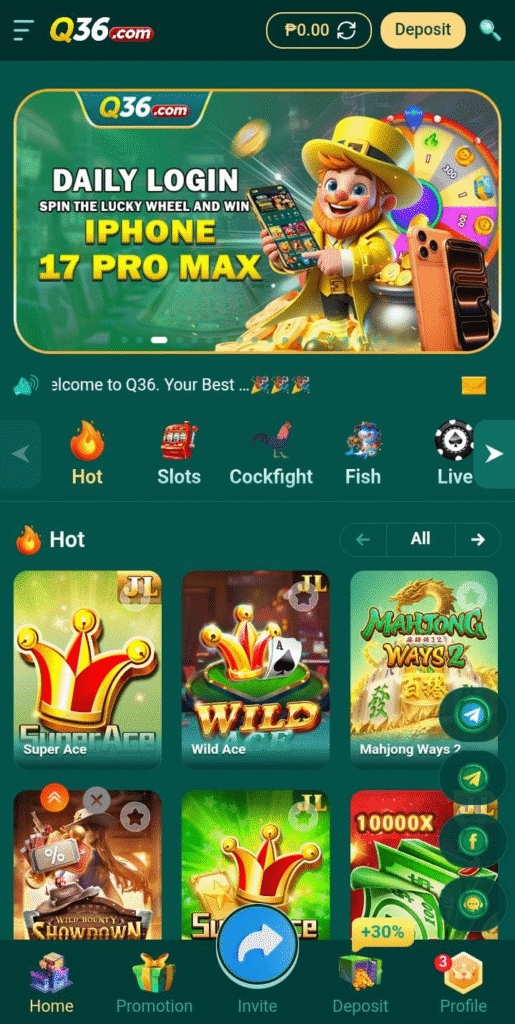 Q36 Game offers slot machines, poker, teen patti, and many other exciting games.